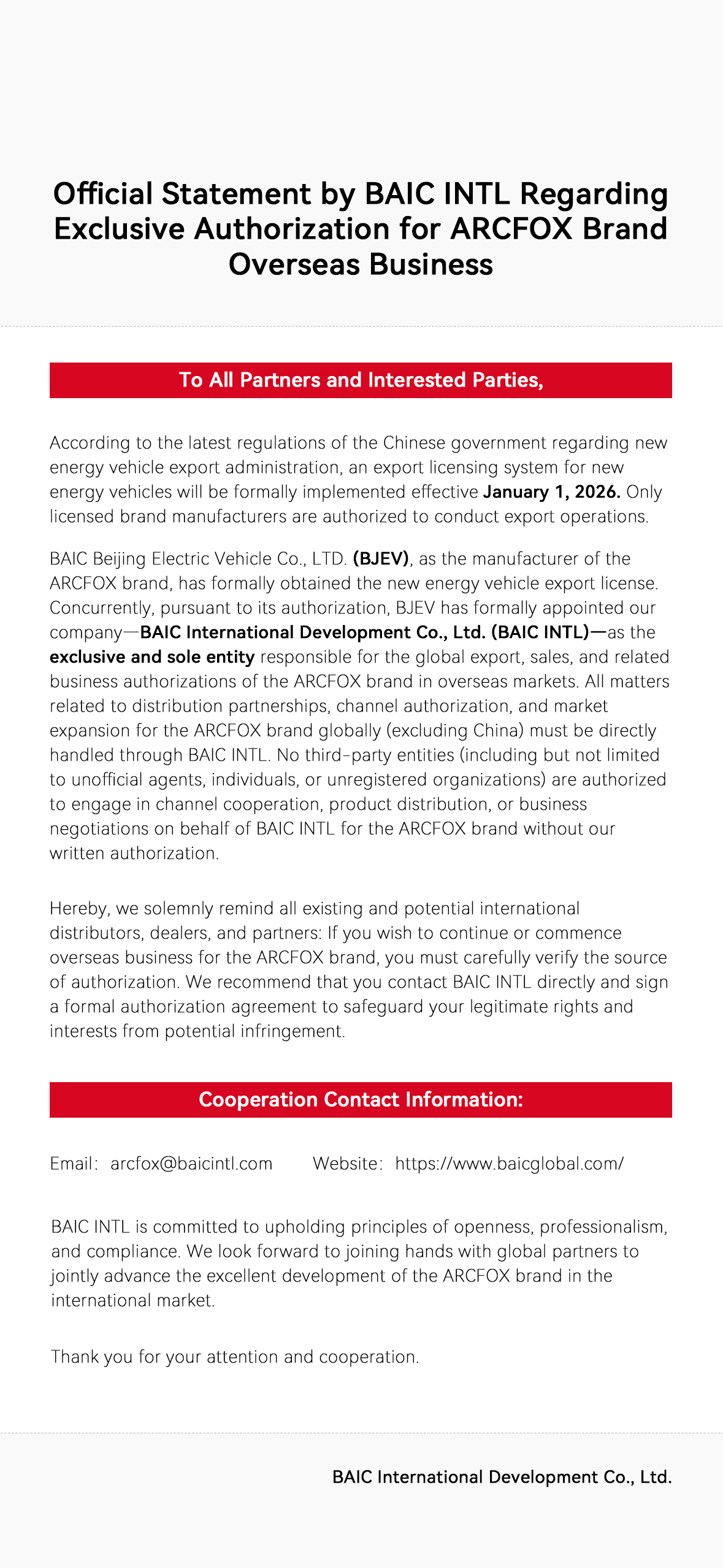 ARCFOX IN THE WORLD